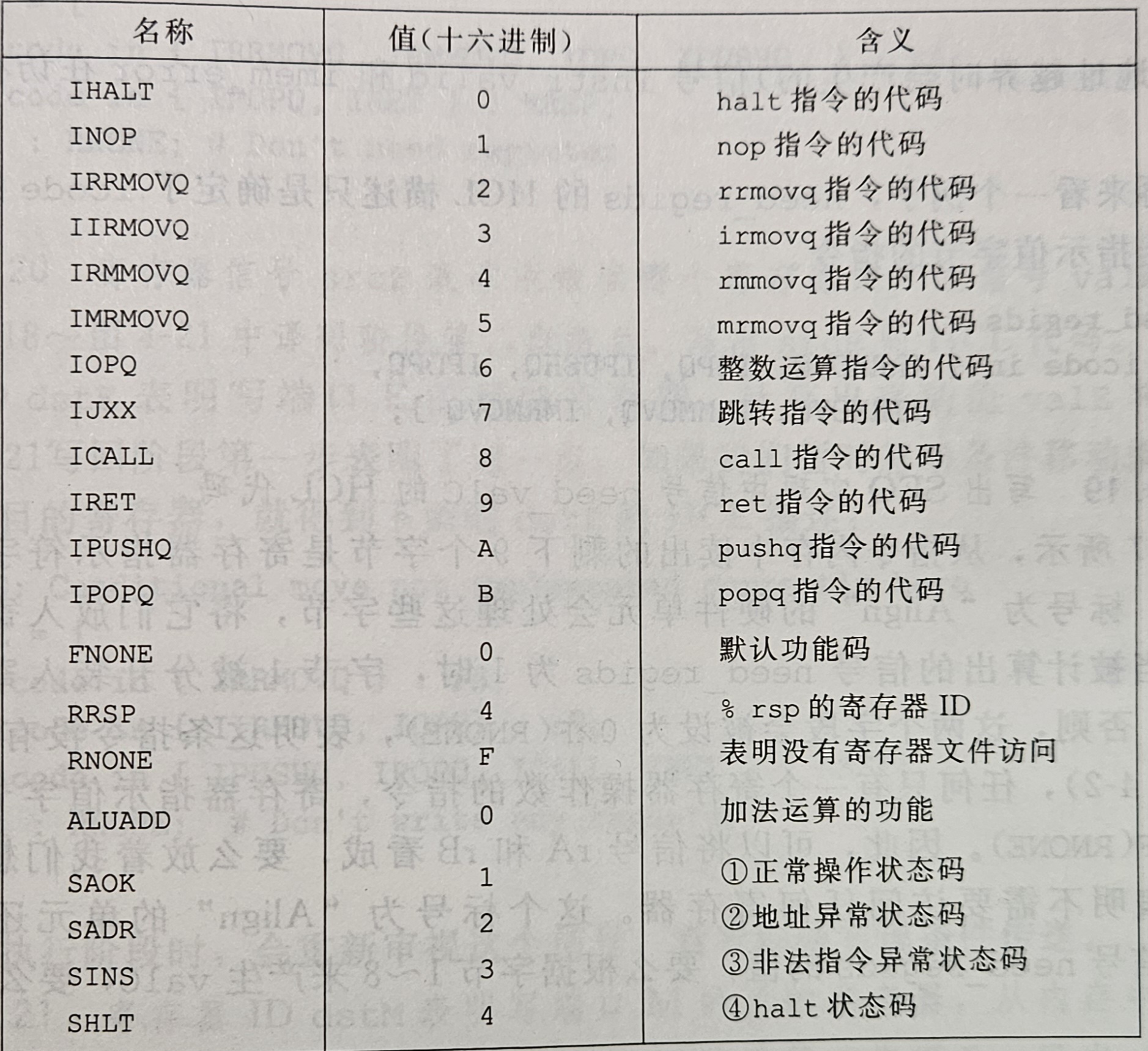 定义一个指令集体系架构(例如 Y86-64)包括定义各种状态单元、指令集和它们得编码、一组编程规范和异常事件处理体系。